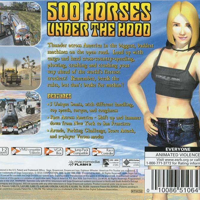 18 Wheeler: American Pro Trucker brings the high-adrenaline world of long-haul trucking to the Sega Dreamcast with arcade-style action and larger-than-life personality. Adapted from Sega’s popular arcade cabinet, the Dreamcast version faithfully captures the intensity of navigating massive rigs through traffic-filled highways as you race against the clock — and against your trucking rival, Black Bear.