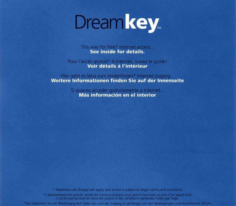 When the Dreamcast launched in Europe in October 1999, Sega included Dreamkey 1.0 with most retail consoles. It allowed users to register with the Dreamarena service—Sega’s European online portal developed in partnership with BT, France Télécom, and other regional ISPs. Subsequent updates, including Dreamkey 1.5, Dreamkey 2.0, and Dreamkey 3.0, improved compatibility and stability. Dreamkey 1.0 remains notable as the first public release connecting European Dreamcast users to the internet.