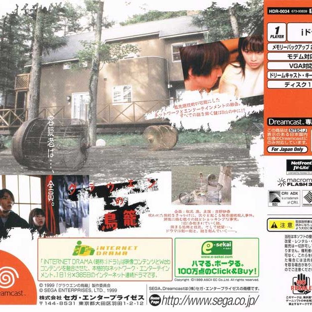 Grauen no Torikago Kapitel 2: Torikago is an officially licensed Dreamcast title released by Millefeui in Japan. Redistribution of its software or disc image is prohibited by copyright law. Collectors and archivists should focus on legal ownership and preservation under fair use guidelines for historical documentation.