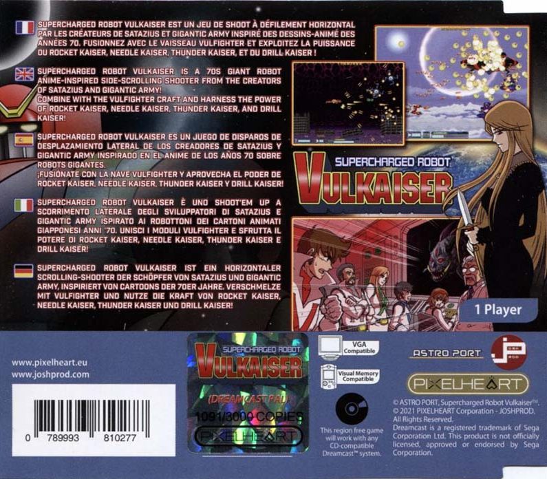 Developed by indie studio Astro Port, Vulkaiser was first released on PC before finding new life through digital storefronts like Steam. The Dreamcast aftermarket scene has embraced similar shmups, making this title a natural candidate for conceptual MIL-CD homebrew releases.