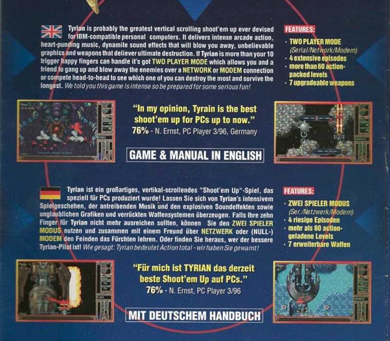 Players pilot a customizable ship, switching between primary weapons and an array of purchasable secondary armaments. The port concept retains Tyrian’s pacing: waves of enemies, mid-stage minibosses, and large set-piece bosses. Resource management (credits, power-up purchases) sits beside classic arcade scoring and lives-based progression.