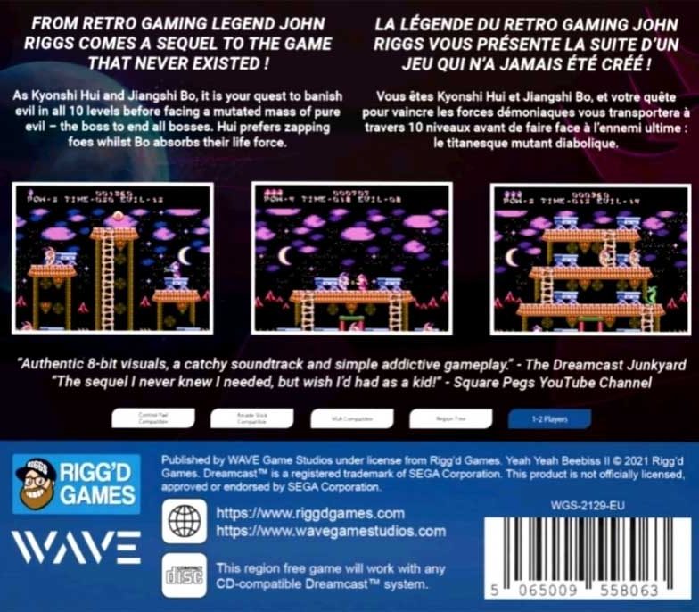 Yeah Yeah Beebiss II is the long-awaited sequel to the legendary “phantom” NES game from the late 1980s that sparked endless rumors in gaming magazines. Decades later, Rigg’d Games brought the myth to life with a real, playable title across multiple platforms—including an official Dreamcast homebrew port. Players step into the shoes of Lords Namakubi and Kyonshi Hui to battle waves of supernatural foes in a fast-paced side-scrolling adventure.